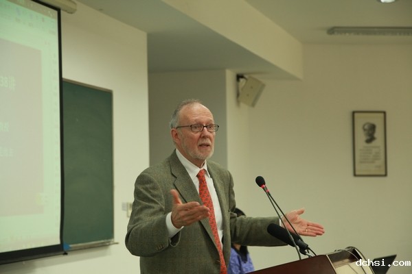 上午10点,外语学院333教室座无虚席。外语学院副院长金衡山教授主持了此次讲坛,并致欢迎辞。葛浩文先生首先对演讲题目做了简单阐释,指出探讨“中国文学如何走出去”问题可以从四个要素出发,即作家和作品、评论者、编辑和翻译者。他以中国当代小说为例,介绍了中国文学在西方世界的接受情况,并针对中国当代作家的创作特点评述了中国小说在英语世界低迷的状态。接着,他从美国作家和评论家厄普代克的一篇有关中国小说的书评展开,指出由于西方批评者对中国文学的涉猎未深而可能造成的误读,这对中国文学的海外推介有一定影响。中国文学“要想走出去”,编辑和翻译者的作用不容小觑。葛浩文先生指出,中国当代出版界缺乏具有良好素质的编辑,同时,相比作家而言,编辑和译者地位较低,通常得不到足够的重视,但事实上编辑的作用尤为重要,他们以独特的眼光可以成为最好的读者,以相对客观的态度评价作品可以成为作家的好友而非敌人。作为中国文学的翻译者,也常常因为译本“不够忠实”原著而遭受非难,葛浩文先生以自己对中国文学的翻译为例,谈论了翻译与作家作品的关系。中国文学若要走出去,需要多种因素的综合考量,葛浩文先生的演讲为中国文学“如何走出去”提供了可能的思路。