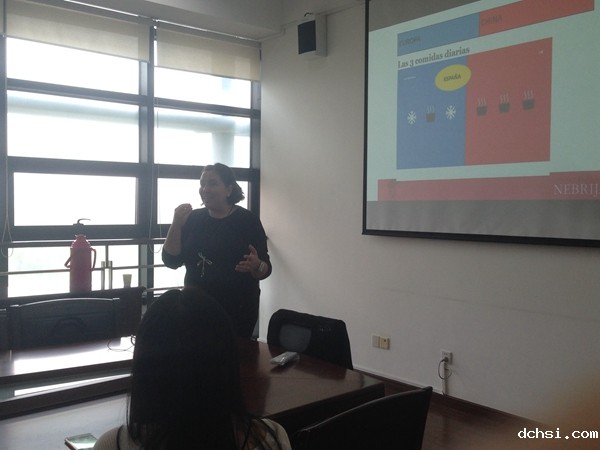 讲座内容从“西班牙人和中国人一样吗?西班牙人是我们中国人印象中的典型欧洲人吗?为什么在许多核心价值观念上我们有如此多的相通、共同之处?”等有趣之处展开。塔玛拉女士通过多媒体展示和幽默细致的讲解为大家一一作答,会上不时传出笑声。为了照顾低年级学生的语言水平,塔玛拉女士刻意减缓了语速,语言简单易懂,即便大一的学生也能结合图文听懂相关内容。