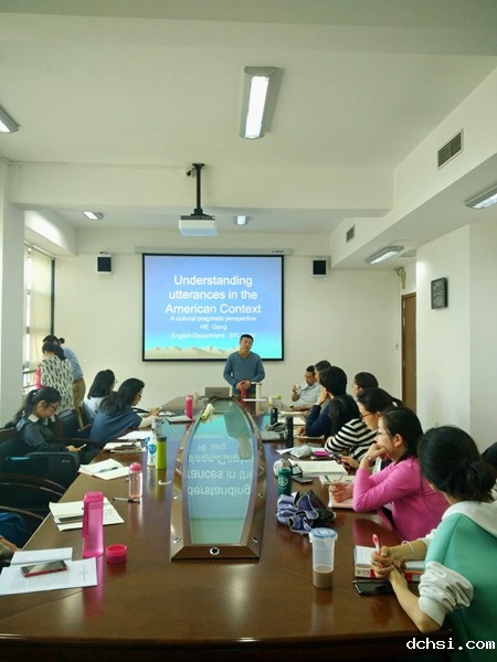 5月18日下午3点至5点半,“观海论坛”第四场讲座于外语学院319会议室召开。何刚教授的演讲——“美国语境下的话语理解 (Understanding Utterance in the American Context) ”——图文并茂,精彩纷呈。外语学院金衡山教授、杨延宁教授、中文系左思民教授、吴君如老师以及诸多教师、博士生、硕士生、访问学者参加了此次学术讲座。