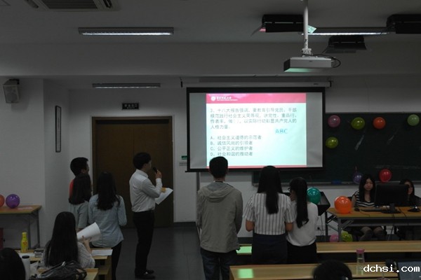 此次活动共分两个部分,在第一部分的知识竞赛中,每个支部都表现出色,展现了学生党员们对党章党规党史及习近平同志系列讲话的熟知,快速地反应回答赢得了阵阵掌声。最终,15级学硕支部的程喜、周翔、陈曦获得一等奖,法德俄西本科支部的夏鼎、徐泳欣、钟雨嫣获得二等奖。