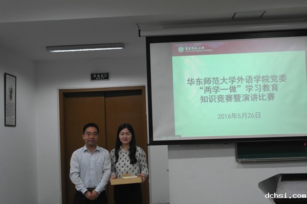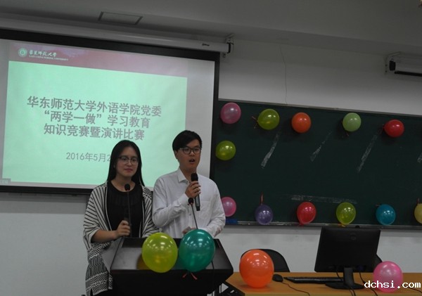 5月26日晚,为扎实开展“两学一做”学习教育,外语学院学生党支部联合举办知识竞赛暨演讲比赛,14级学硕支部、15级学硕支部、15级专硕支部、日语本科支部、法德俄西本科支部以及英翻本科支部报名参与了比赛,院党委书记俞黎阳、党委副书记兼副院长庄瑜、院行政党支部书记高冬琴、15届优秀毕业生党员诸天龙担任评委。