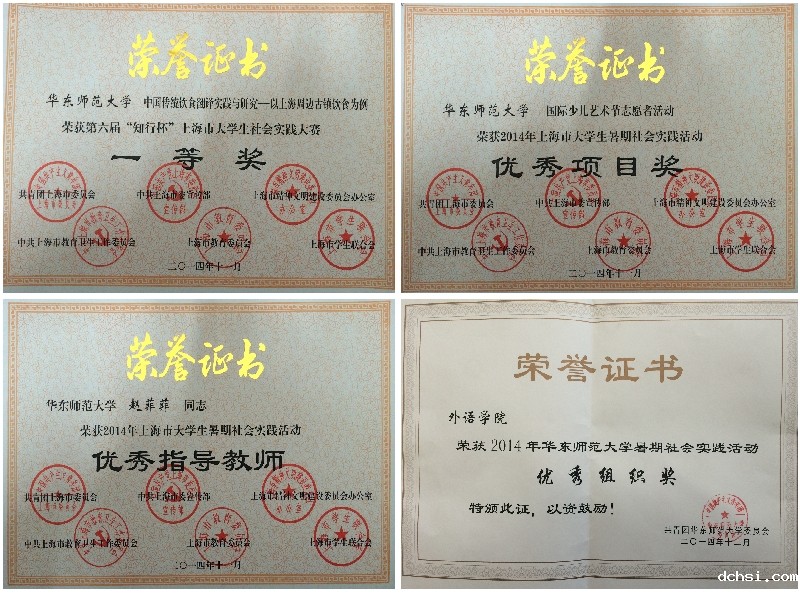 第六届“知行杯”上海市暑期社会实践大赛一等奖,2014年伟徳体育网址暑期社会实践“最佳项目奖”