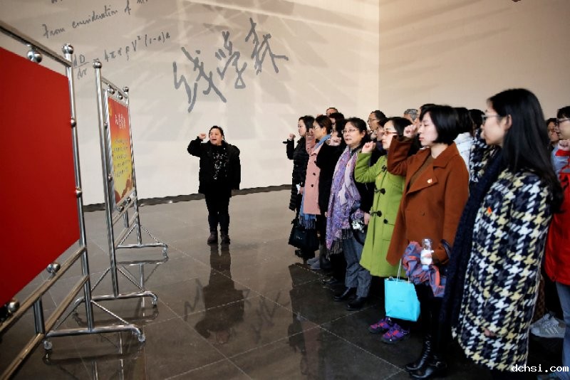 参观结束后,全体党员在用钱老的手稿制作成的雕塑“升腾的智慧”下重温入党誓词。党员们举起右手,面对党旗再次庄严地立下“为共产主义事业奋斗终身”的誓言。在钱学森图书馆重温誓词有特殊的意义:高校教职工党员应以钱学森的言行事迹为精神标杆,深入学习宣传贯彻党的十九大精神,爱党爱国、不忘初心、潜心科研、全力育人,为实现中华民族的伟大复兴贡献力量。