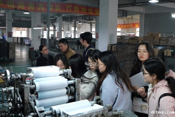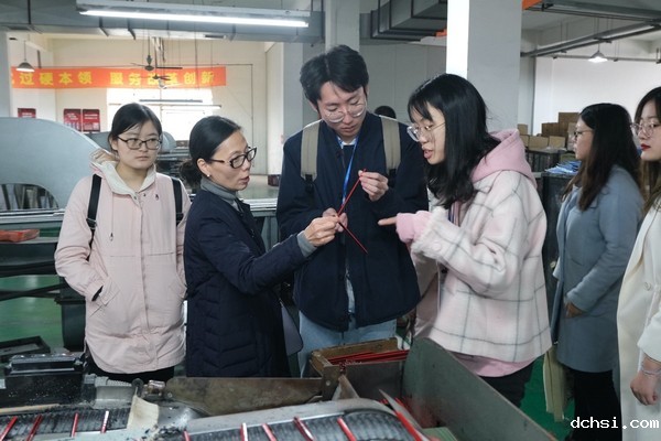 最后,王书记带领实践团来到工厂车间,参观铅笔的生产流程。制作一只小小的铅笔要经过配料、辊压、制板、刨槽等十余道工序才能完成。面对玲琅满目、各式各样的铅笔,王书记介绍道,除了自身旗下品牌的生产外,公司还为一些国外品牌进行代工生产。目前,公司出口产品大部分为贴牌、半成品,而真正以品牌出口的成品受众只是海外华人消费者,仅占出口量的10%左右。由此可见,国际市场对中铅公司“中华牌铅笔”、“长城牌铅笔”这样拥有悠久历史的老字号品牌知之甚少,为此,我们作为外语人助力中国企业走出去责无旁贷。