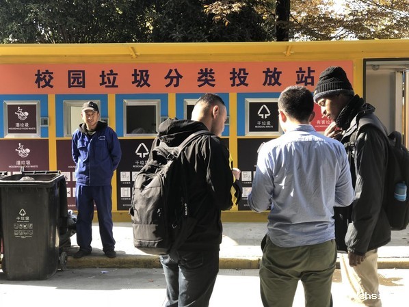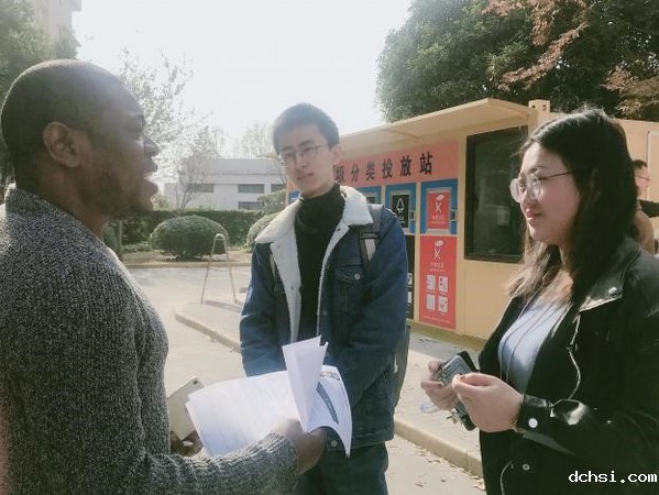 通过采访,我们了解到留学生垃圾分类及环保意识挺强,主动进行垃圾分类,在不懂不会的情况下,会主动询问投放站的工作人员。这些工作人员很热情,对同学们的垃圾分类进行指导和监督,对同学们错误的垃圾分类进行纠正和指导,让同学们对垃圾分类的方法有更深刻的理解和认识。相信我们的垃圾分类资料能帮助他们进一步掌握垃圾分类的知识,形成“自觉分类垃圾,创建美好校园”的良好氛围。