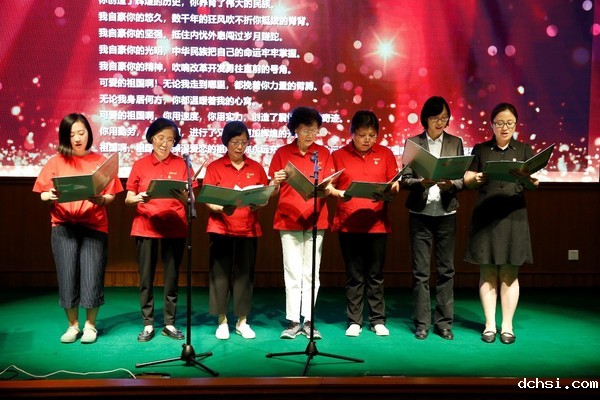 主题活动成果展示在退休党支部蒋范琛、杨珠樨、何慧敏和行政党支部闫露、江宇靖、丁兰兰、周俊辰中文朗诵《我的祖国》中推向高潮,在场党员无不为之动容,爱国主义情怀激荡在每个人心中。