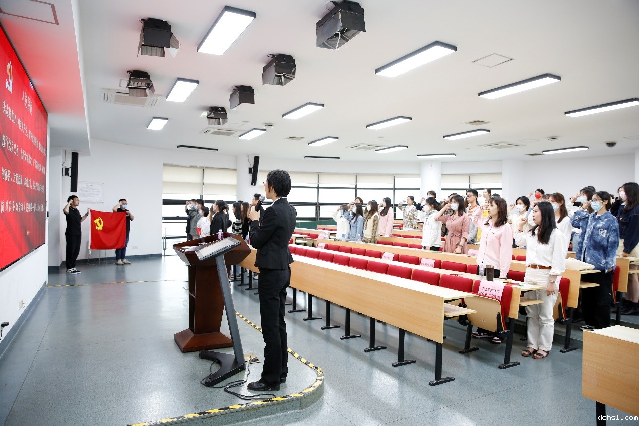 随后,由江宇靖领誓,全体党员面向党旗,以庄严之声重温入党誓词。