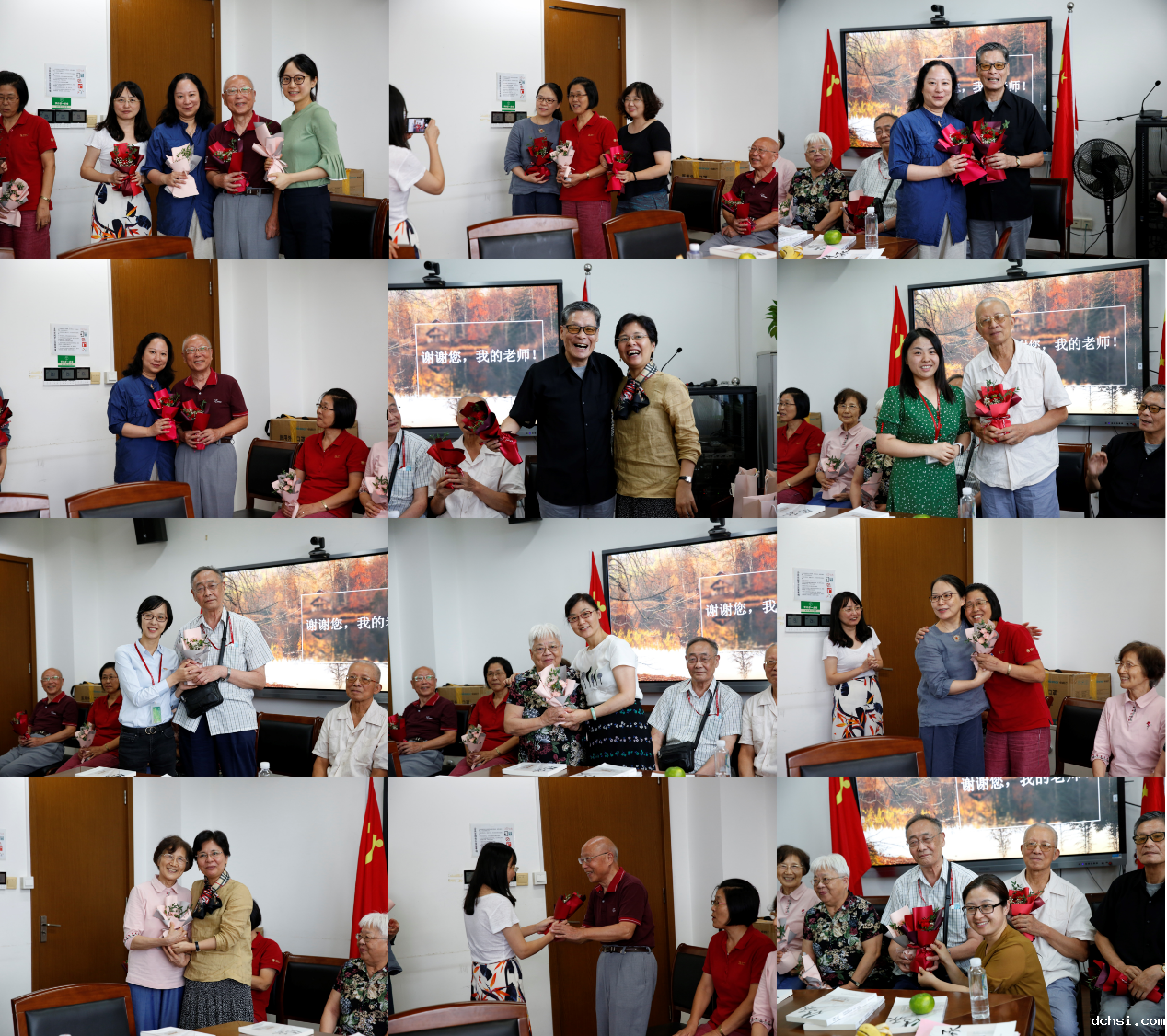 在“我和我的老师”交流环节,教师代表与老教师在温馨欢快的氛围中共同回忆了师大学习和工作的时光,青年教师代表为敬爱的老教师们送上美丽的鲜花。一张张老照片承载着一段段动人的记忆,一束束鲜花诉说着一份份饱含深情的敬意。