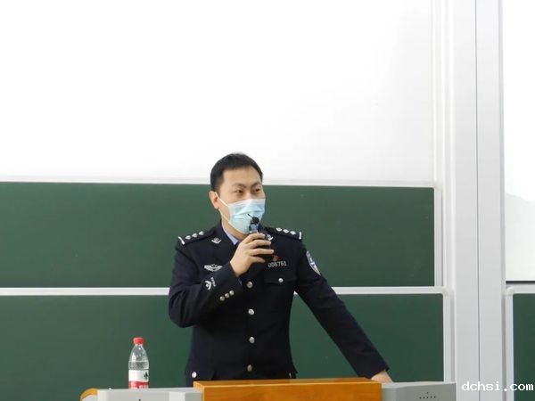 周警官从国内外的诈骗事件频发的现状引入,提醒同学们:我们不是生在一个和平的年代,而是生在一个和平的国家。接着,周新凯概括了大学校园内常见的诈骗类型,分享了交通安全、财产安全、信息安全等具体案例,提醒同学们日常学习生活中提高警惕、规避风险,既要保护自己和他人的生命安全,更要学会甄别信息,在网络世界维护自身权益。
