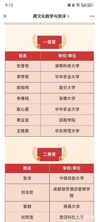 大学英语教学部教师在第八届全国高等院校英语教师教学基本功大赛中获得佳绩。孙悠夏荣获说课组全国一等奖、省级一等奖;王聪聪荣获微课组全国一等奖;汪燕荣获实录课组(大学英语)全国二等奖、最佳语音语调单项奖、省级一等奖;王志宏荣获说课组省级二等奖。苏俊玲、周小勇荣获优秀指导教师奖。