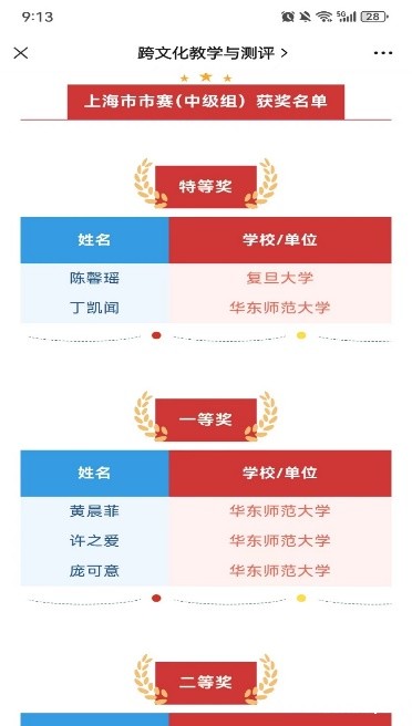 持续改革深化内涵;多维拓展并蒂开花——我院《跨文化交际》课程建设再结硕果。团队指导的两组队伍在2023年“外教社杯”全国跨文化能力大赛(口头)中,分别获得上海赛区一等奖和二等奖。12月,团队申报的本科教学成果“一个核心、双向适应、三堂联动、四维育人——中国特色跨文化教育路径探索”获得2023年伟徳体育网址本科教学成果奖一等奖;团队指导的学生在2023年全国跨文化能力竞赛(书面)中获得优异成绩,在上海赛区排名中,我校学生获得特等奖1名;并包揽了一等奖(3名)、二等奖(4名)的所有名额;另有2名同学获得三等奖。在全国赛区排名中,我校学生获得特等奖4名;一等奖4名(中级组3名、高级组1名);二等奖2名,三等奖若干。团队负责人周小勇获颁2023年伟徳体育网址本科教学优秀奖。