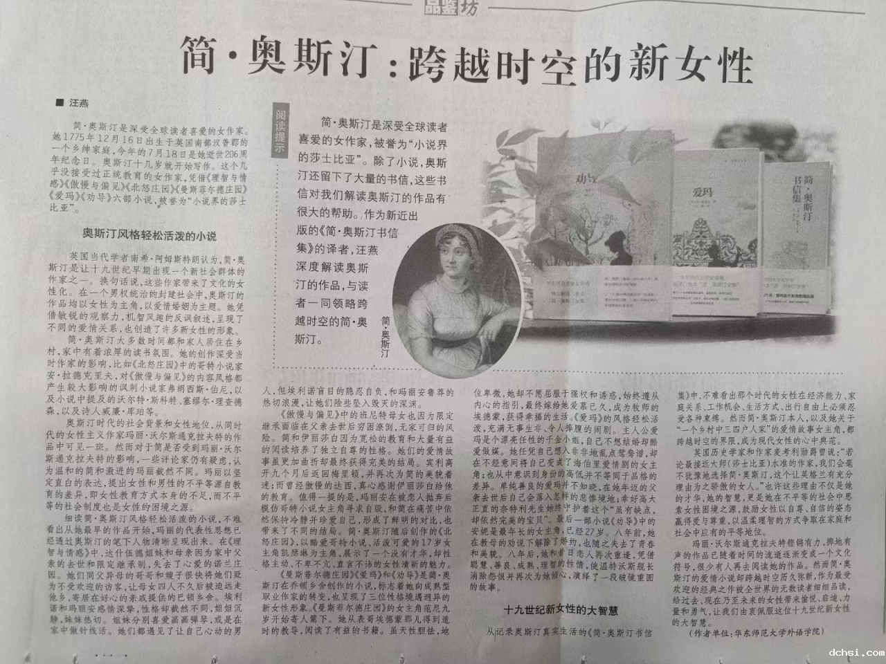 汪燕在《中国妇女报》新女学周刊发表“简•奥斯汀:跨越时空的新女性”文章。