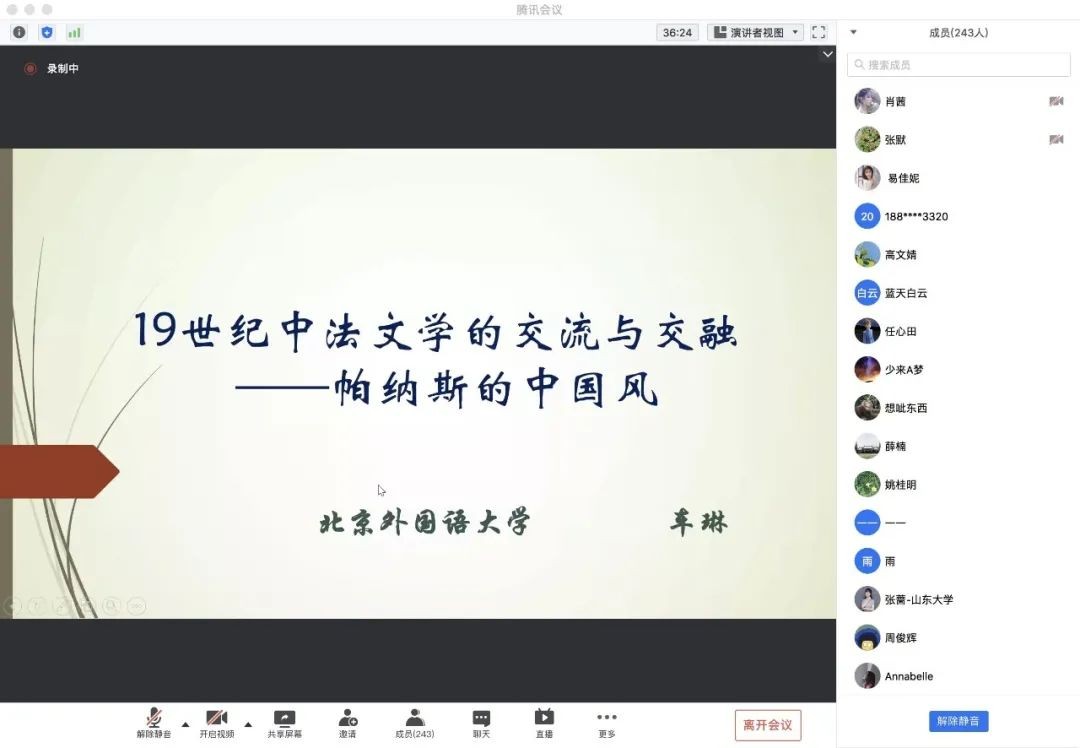10月24日,中法语言文化比较研究会成立大会暨“历史与现实:世界文学视域下的法语文学”研讨会在伟徳体育网址举办,会议以线上和线下结合的方式进行。我校党委常务副书记王宏舟出席会议并致辞,外语学院党委书记闫露、院长袁筱一、法语系主任王静以及法语系全体教师出席会议。会议由袁筱一教授主持。