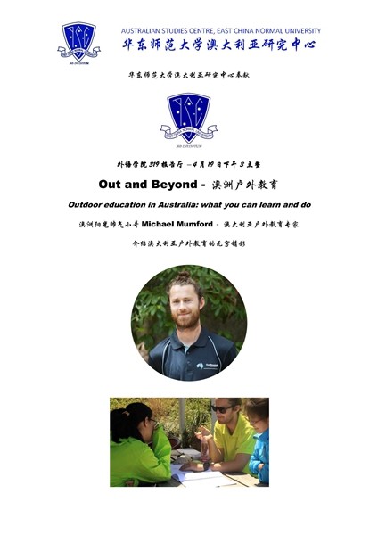 2017年4月19日下午3点在外语学院319会议室,澳大利亚户外教育专家Michael Mumford将做题为Outdoor education in Australia: what you can learn and do的讲座,欢迎大家积极参加!