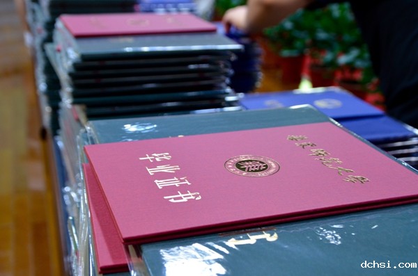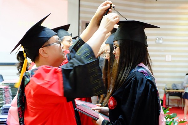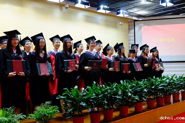 随后,外语学院学位委员会的老师们着导师服,走到台前,为本科、硕士毕业生们进行了隆重的“拨穗学位授予”仪式。毕业生们一个接一个的上台,从老师手中结果沉甸甸的学位证书和毕业证书,和老师们合影留念。