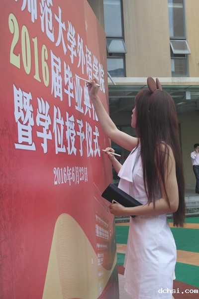 红毯秀之后的外语学院2016届毕业典礼上,主持人庄瑜老师细数了2016届学生的辉煌。院党委书记俞黎阳老师宣读了优秀毕业生的名单。
