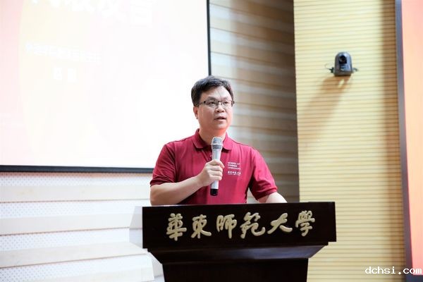 教师代表、翻译系主任赵刚在致辞中祝贺同学们成为一名光荣的ECNUer,他向新生表达三点期望,一是要努力学好外语,为中国文化走出去,为提高中华民族的软实力不懈努力。二是在技术高度发展的今天,能够破除成见,放弃悲观,拥抱技术,让技术服务于我们的目标。三是能保持质疑的精神、批判的精神、逻辑思维的精神。