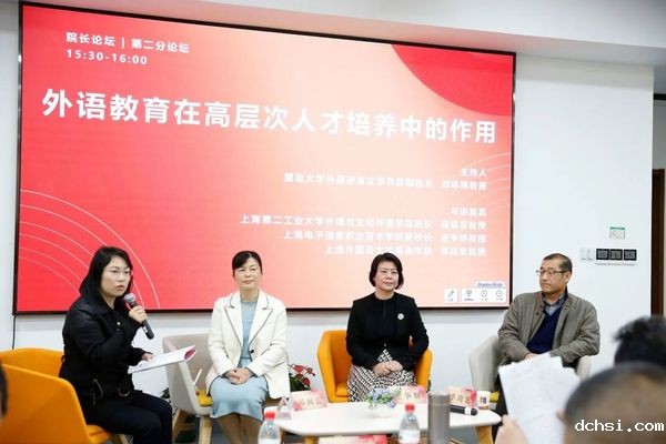 第二分论坛由复旦大学外国语言文学学院副院长郑咏滟教授主持,上海第二工业大学外语与文化传播学院院长郑佩芸教授、上海电子信息职业技术学院副校长窦争妍教授、上海外国语大学英语学院李尚宏教授参与探讨。专家们以“外语教育在高层次人才培养中的作用”为主题,结合人才培养理念、人才培养方法、高等职业教育中外语教学重要性等多个维度展开讨论。
