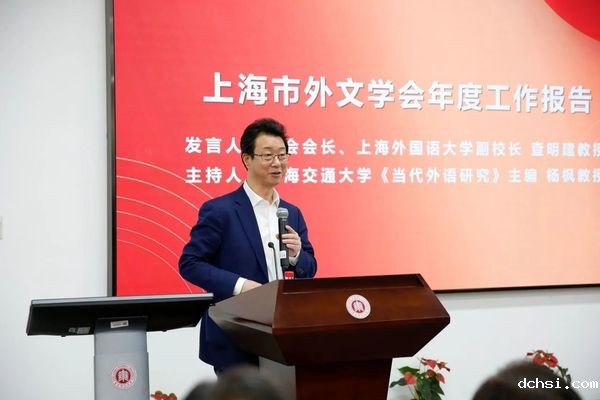 上海市外文学会会长、上海外国语大学副校长查明建做外文学会年度工作报告