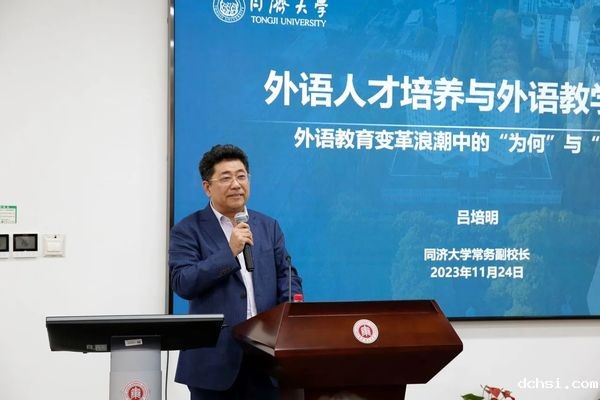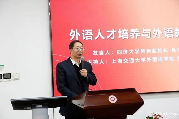 开幕式结束后,同济大学常务副校长吕培明与中国教育科学研究院研究员、中国教育学会外语教学专业委员会理事长龚亚夫作为专家代表开展主旨报告。常务副会长、上海交通大学外国语学院彭青龙与学会副会长兼秘书长、同济大学外国语学院院长吴赟主持报告分别主持。