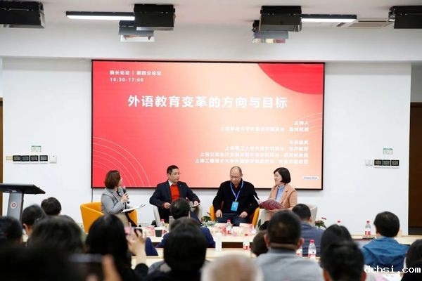 第五分论坛以“上海城市定位对外语教育的特殊需求”为主题,由上海师范大学外国语学院院长高航教授主持,与谈嘉宾有上海应用技术大学外国语学院院长潘智丹教授、上海中医药大学外语教学中心主任周恩教授、同济大学外国语学院副书记黄立鹤副教授与上海杉达学院外语学院西语顾问陈泉教授。专家们指出,外语人才培养必须紧跟国家发展:要以“专”“精”“特”“新”标准培养终身学习型人才,同时各校应在“数智时代”发掘发展自身优势领域。