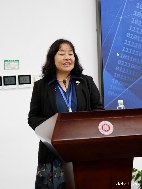全国大学英语四、六级考试委员会主任、上海交通大学金艳教授作报告(左)