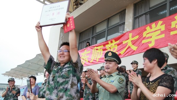 9月2日早晨,所有13级学生卸掉假期的懒散,穿好整齐的迷彩服,在闵行校区东操场队列集合进行动员大会,简短的准备以及熟悉训练场之后,2号下午便正式开始训练。外语学院分到1营3连,在迷彩的海洋中不得不感叹,外院小伙伴中,虽然只有一列的男生各个军姿挺拔,午后虽说不是正午骄阳似火,但是面对斜阳,笔直的军姿下汗水还是一遍一遍的湿透迷彩军装。随后的几天训练以队列训练及行进间转体为主,训练之余各连队组织了各自的活动,为军训生活增添了一抹色彩。此次军训中外院更是喜讯迭出,5号举行的定向越野比赛中取得了第二名的好成绩,并且在演讲比赛主持人选拔中,经过层层考核,外院的小伙伴也争得一席之位,为连队和外院争光添彩。9号的队列考核,刚一上场,外院同学们铿锵有力地报数就获得了一阵喝彩,之后各个项目的考察也不负众望,获得了队列考核第一名。为准备10号举办的合唱比赛,外院的同学牺牲了晚上的休息时间,积极磨合勤奋练习,最后用优异的成绩为大家的付出送上了满意的答卷。当然除了紧张的竞赛之外,学校安排了红十字培训,旨在培养学生急救能力和自我保护能力,受益匪浅。 12日上午的分列式,是对军训成果的考核,同时也是军训生活的压轴环节,各连队气势如虹,用最饱满的精神状态接受检阅。外院的小伙伴们用整齐的步伐和嘹亮的口号声展现了外院昂扬的精神风貌。最后,外语学院13级的学生用坚毅和顽强取得了首个一等奖,为学院争得荣誉,也为为期12天的军训划上了一个完美的句号!