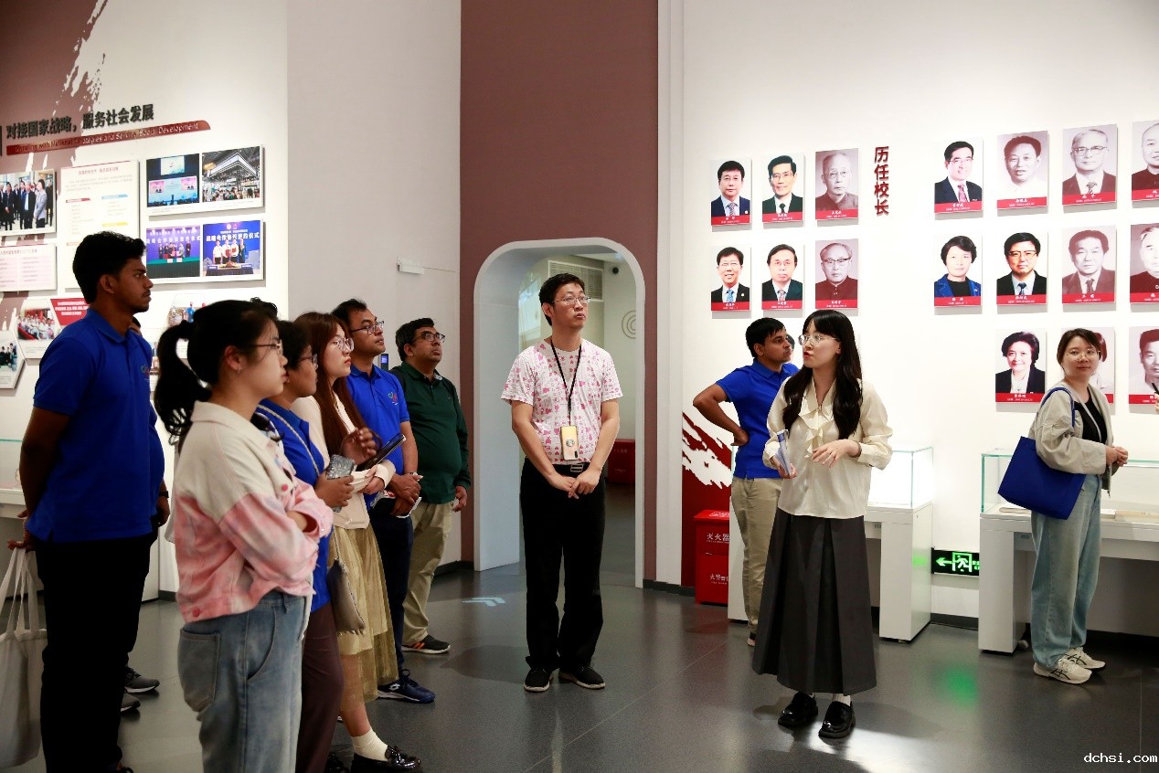 活动伊始,师生与孟加拉国青年领袖访华团的近20名青年学者共同聆听了校史馆的双语讲解。其中,英文讲解由志愿讲解服务队成员、学术型研究生第二党支部党员高婕提供。在校史馆老师细致入微的讲解以及高婕流畅自信的翻译下,师生们通过一个个生动的故事更加深入了解了学校历史,对“求实创造、为人师表”的校训精神有了更加深刻的体会。同时,高婕同学以亲身示范,有效帮助了新队员熟悉了今后的服务流程。