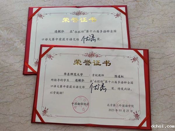 来自国内外高校的114名选手在各项比赛中展开激烈角逐,最终日语系2020级本科生连敏弘获得日语交替传译组优秀奖,陈凌虹老师获得优秀指导教师称号。
