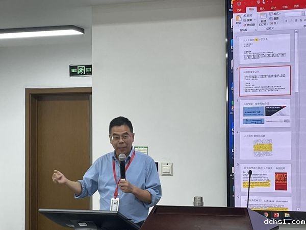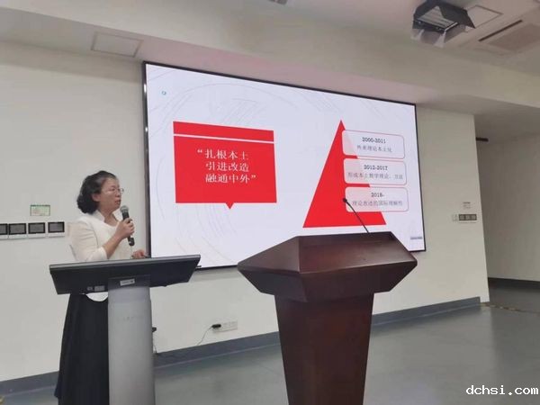 第二场报告《“教-研-习-评”四位一体的英语语音教学》由刘森教授主讲。刘森教授主要介绍了“教-研-习-评”一体化的英语语音课程教学体系。英语语音教学团队引进、改良国外先进的教学理论与方法,力求提供解决中国英语学习者问题的本土化教学方案。经过8年实践论证,自主研发并出版国内首份《中国英语学习者语音能力诊断性评价量表》。此外,刘森教授具体讲授了如何将语音学习与有效的信息构建、获取、传递、交际结合,构建起了以专业知识内容为依托的一体化课程教学体系。