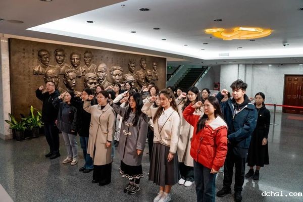 参观结束后,全体党员来到宣誓大厅,重温入党誓词。由学术型研究生第三党支部书记冯烨领誓,在鲜红的党旗前,全体党员庄严宣誓。