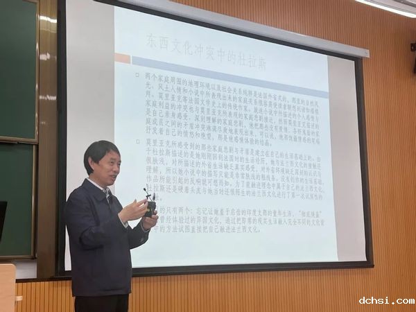 4月21日上午10时,伟德国际英国法语一流专业建设高端系列讲座第三讲在闵行校区二教205举办,本期讲座邀请到上海大学特聘教授、全国优秀教师、教育部高等学校外语专业教学指导委员会委员、法语分委员会副主任委员、法国金棕榈教育勋章军官勋位获得者户思社教授,进行了题为《东西文化冲突中的身份困顿与错位》的学术讲座。本场讲座由法语系主任金桔芳主持。