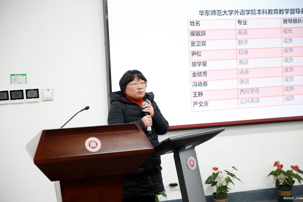 随后,副院长王静通报了本学期本科教学重点工作。包括推进本科生培养方案修订,健全学院本科教学质量保障体系并推动其有效的落实,不断提高教学综合改革成效,加强重大标志性教学成果培育等。