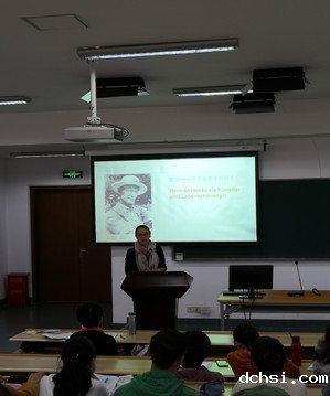 报告会由黄雪媛老师开场,她用充满诗意的语言介绍了著名德语作家黑塞的诗歌作品,引领大家走进身为作家、艺术家和生活哲人的大师的精神世界,在她的声情并茂的讲述和演示中,大家仿佛伴随着这位哲人,亲历他的心路历程,体会他孤独、拯救和实现自我的精神境界。