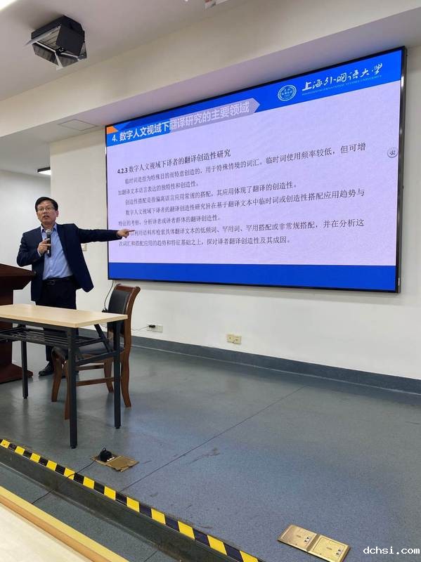 随后,胡开宝老师结合自己的课题项目,介绍了数字人文视域下翻译研究的属性与特征、主要领域(翻译文本研究、译者研究、翻译史研究与翻译教学研究)以及数字人文视域下翻译研究的意义。