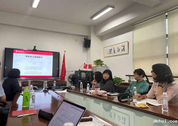 接着,金晶老师从育人目标、课程特色、课程思政建设路径、课程思政要点、教学设计、学生学习成果展示等方面,介绍了《中日时文思辨阅读》的建设过程及成效。其中,金老师重点分享了教学实践过程中,为了优化育人效果,如何根据学生需求调整教学素材、教学方式等经验。最后,金老师提出了两点反思:从事网络教学所需要的技能有待提高;学生参与网络学习的热情及小组讨论略有不足,以期进一步提高教学效果。