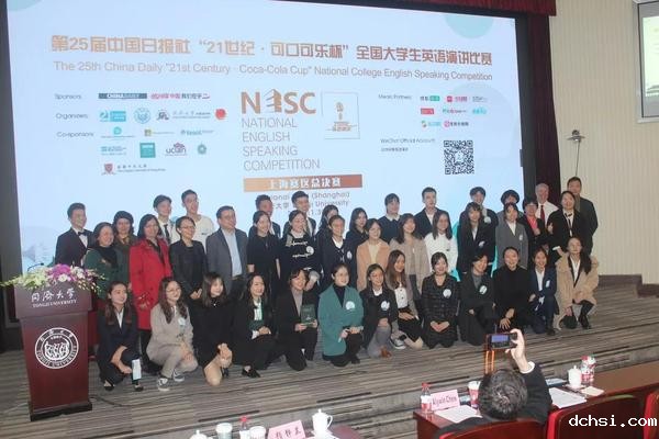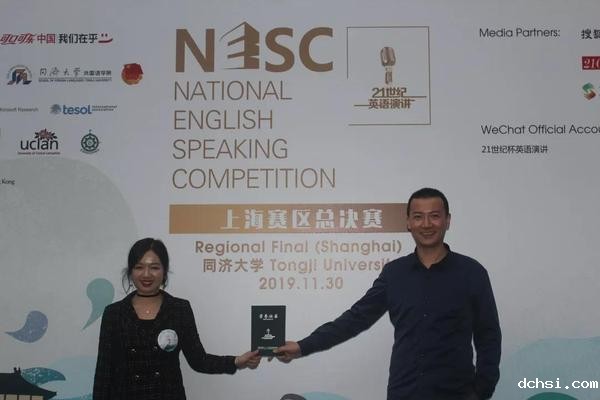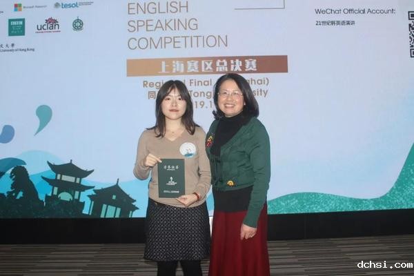 On Nov, 30th, the final of the 25th 21st Century Cup National English Speaking Competition Shanghai area was held in the hall of Yifu Building, Tongji University. After fierce competition, Wang Yan, a law major student, winning the grand prize((the highest award))gained access to the national final. Zhong Jiaqi, an English major student, was awarded the first prize.